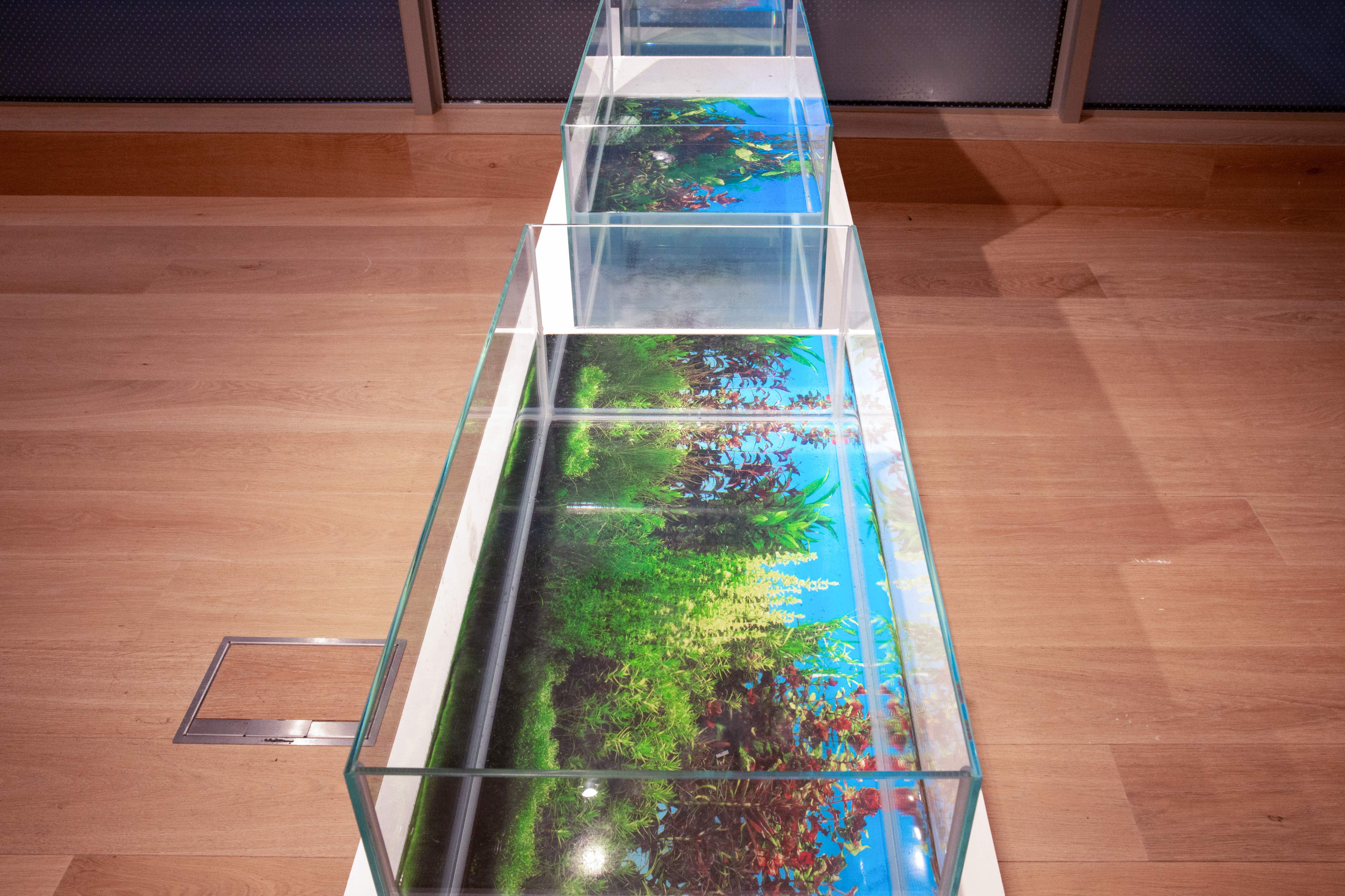 L'aquarium est inventé en 1850 par un chimiste, Robert Warington, qui a voulu reconstituer un environnement aquatique ou bien sous-marin pour observer le phénomène de la photosynthèse et du cycle de la production-consommation du gaz entre les animaux aquatiques et les plantes aquatiques. L'aquarium est donc un espace inventé pour une expérimentation scientifique qui fonctionne comme un éco-système en miniature. Et sa raison d'être implique toujours le regard de l'extérieur vers son l'intérieur.